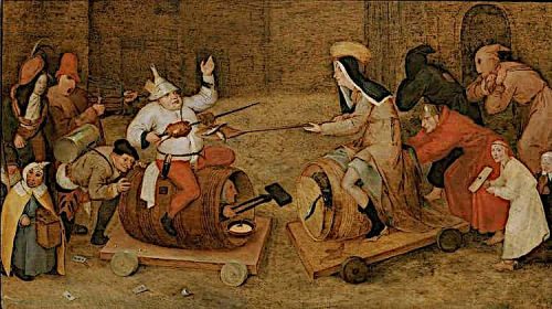 Having evolved from countless earlier civilizations, the medieval Feast of Fools was an insane debauchery during which boy kings were appointed and demanded donations, the most deficient fools were elected judges, priests and nuns ran sexually amok, and people sang The Song Of The Ass as a child rode a donkey into church, up to the altar, while the congregants would “hee-haw” their responses to the priest’s sermon.