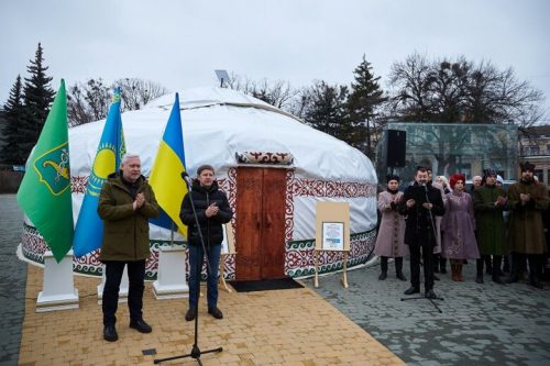 Somewhat lost in the air-borne attacks and slogging ground charges on this Den Sobornosti (Ukrainian Unity Day), was the grand opening of the gift from Kazakhstan now gracing Kharkiv’s Beketov metro station: The Yurt Of Invincibility.